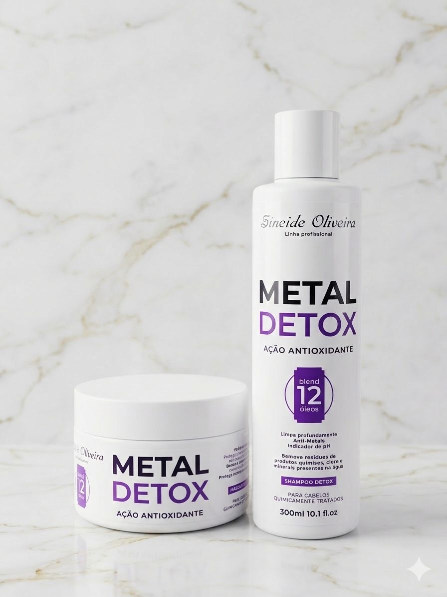 O metal Detox é um produto inovador que limpa profundamente os cabelos, removendo resíduos de produtos químicos, cloro e minerais presente na água. Sua fórmula exclusiva contém agentes quelantes que que se ligam as impurezas facilitando sua remoção durante o enxágue.